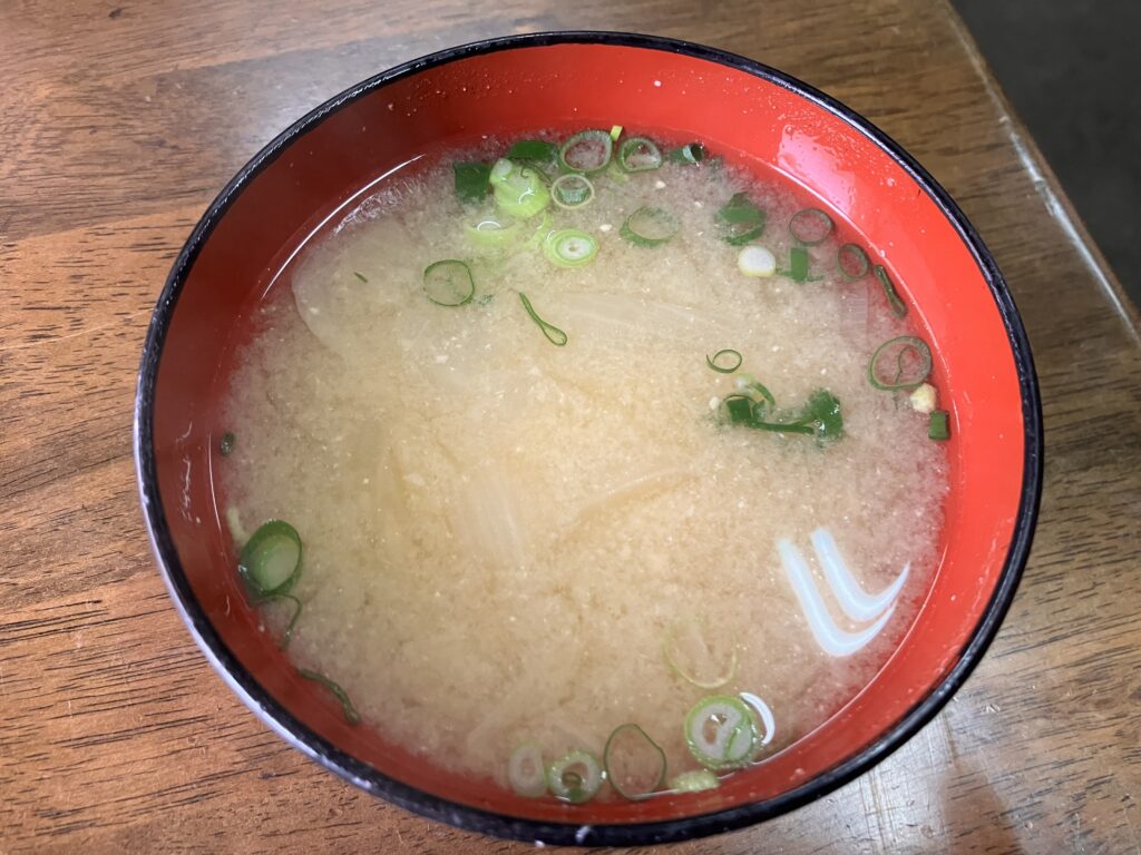 玉ねぎとネギが入ったシンプルな味噌汁ですが、甘みを感じる優しい味で忖度抜きで味はトップレベルの味噌汁。