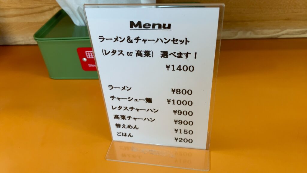 メニューはこんな感じ。ラーメンとチャーハンが看板メニューか。