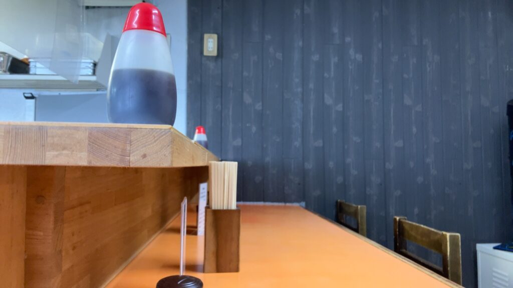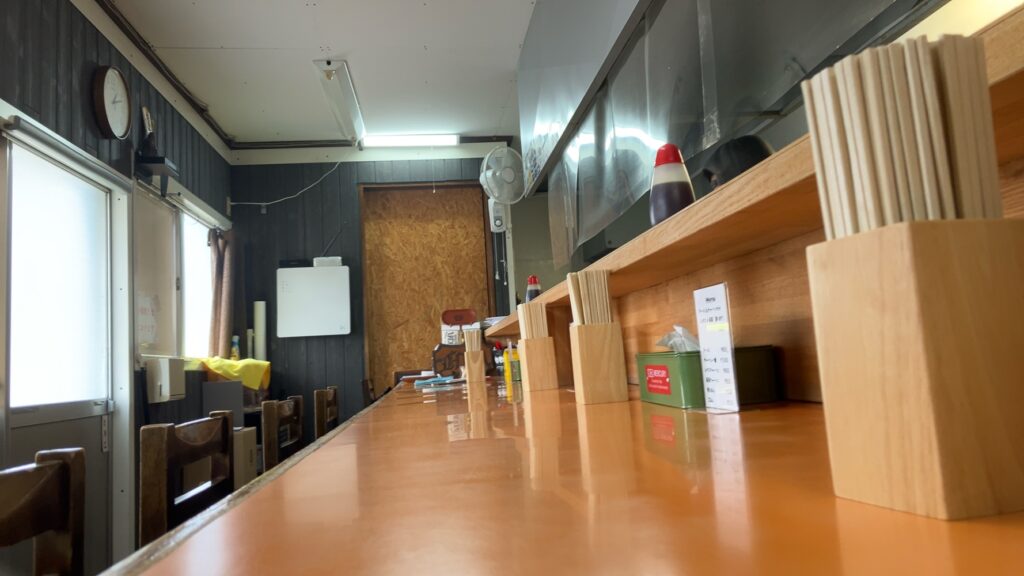 席はL字カウンター席のみでテーブル席はございません。外観の渋さといい、中もラーメン屋って感じですごく良い!!