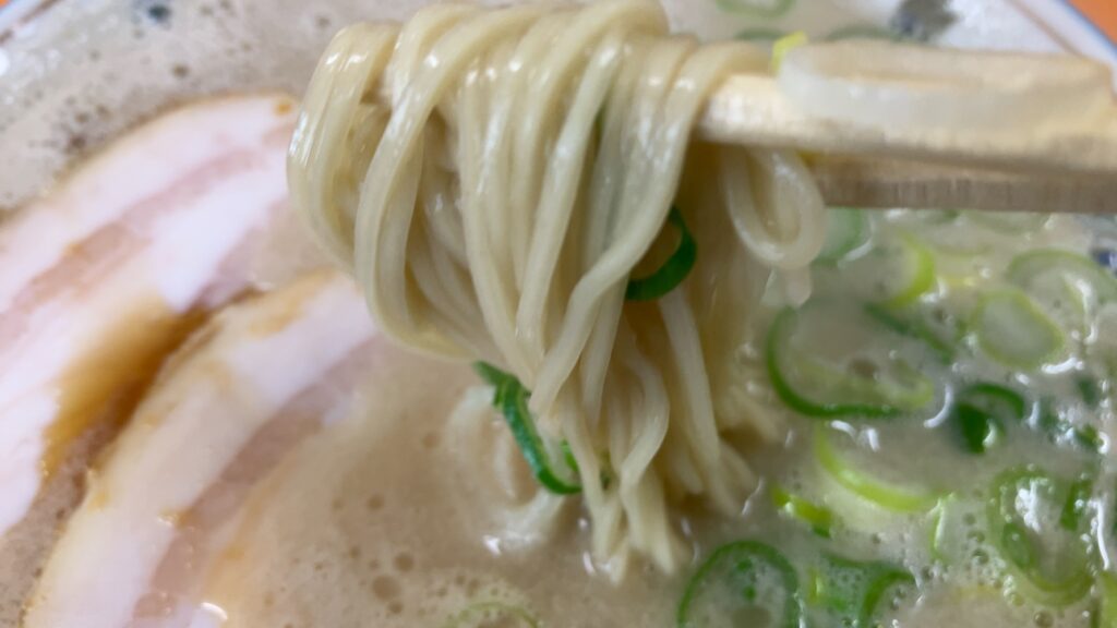 麺は中細ストレート麺。麺がスープに絡み、大変美味!