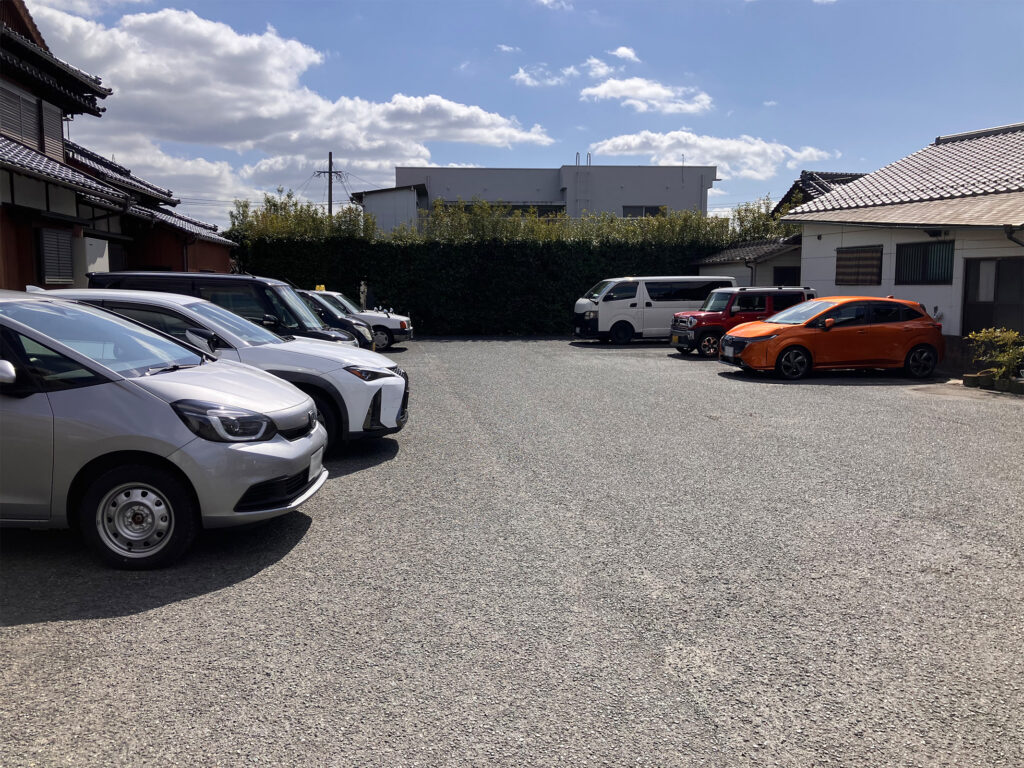 駐車場はこんな感じ。月極の契約者なのか札がスペースがあるので、駐車する際はご注意を。